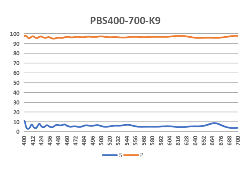 偏振分光棱鏡能把入射的非偏振光分成兩束垂直的線偏光。其中P偏光完全通過,而S偏光以45度角被反射,出射方向與P光成90度角。此偏振分光棱鏡由一對(duì)高精度直角棱鏡膠合而成,其中一個(gè)棱鏡的斜面上鍍有偏振分光介質(zhì)膜。韜譜能提供多種規(guī)格的PBS棱鏡供您選擇